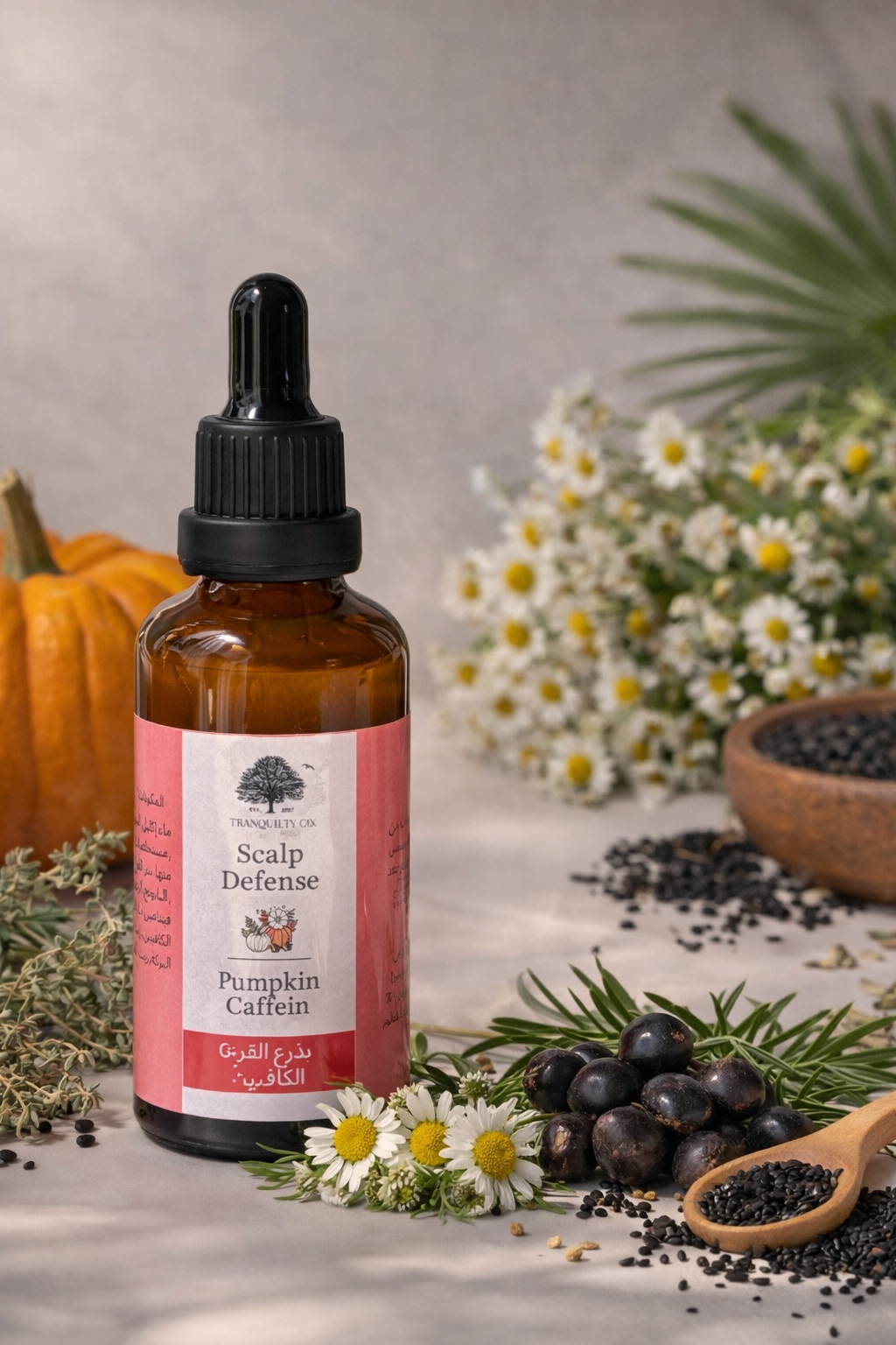 لقد طورنا هذا السيروم بدقة فائقة ليكون البديل الطبيعي والأقوى لمادة المينوكسيديل، متجنبين كافة آثارها الجانبية. بتركيبة غنية بـ البلميط المنشاري وبذور القرع، يعمل السيروم على استهداف المسبب الرئيسي للتساقط الهرموني والوراثي. لا يكتفي 'سكالب ديفنس' بمحاربة الإنزيمات المسببة للتساقط، بل يعالج الإجهاد التأكسدي والتهابات الفروة بفضل فيتامينات ب ٥+ ب ٣ ومستخلص الشاي الأخضر والسكوالين. الحل المتكامل لفروة رأس صحية وبيئة مثالية لنمو الشعر من جديد