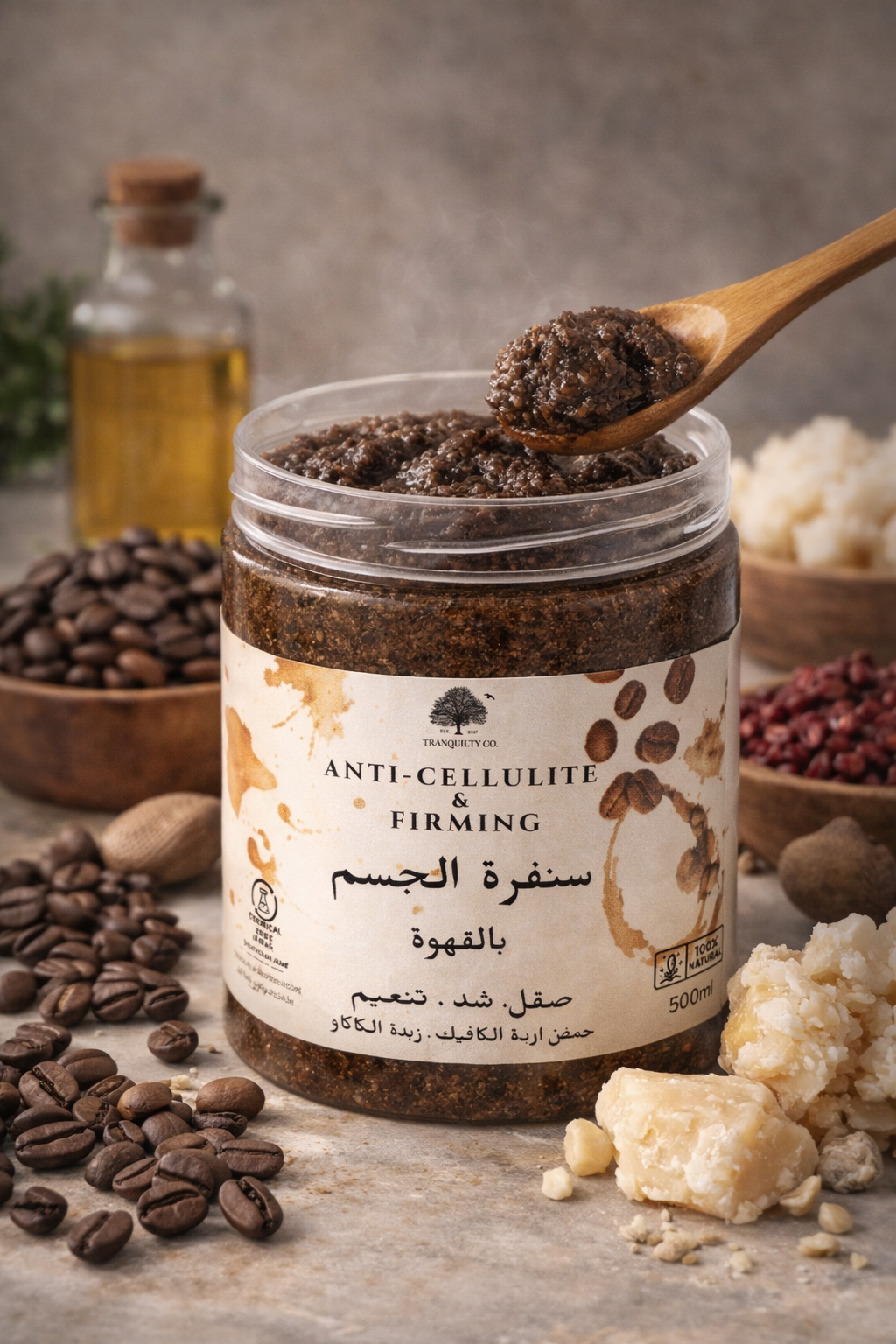 ٢- سنفرة القهوة الزيتية و حمض الكافييك هي قهوتك الصباحية لبشرتك. تشد، تنعم، وتحارب علامات التمدد برائحة توقظ الحواس.